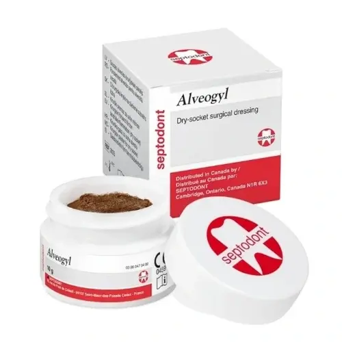 Alveogyl è una pasta per medicazione alveolare, utilizzata principalmente dopo estrazioni dentali, soprattutto in casi di alveolite secca o estrazioni difficili. Questo prodotto è composto da fibre di Penghawar, che favoriscono l’emostasi per compressione e proteggono l’alveolo da infezioni grazie alla sua azione barriera. Grazie alla sua struttura fibrosa, Alveogyl aderisce facilmente alla cavità alveolare, permettendo una protezione efficace e favorendo la guarigione naturale. La pasta si elimina gradualmente con i movimenti della lingua del paziente, senza necessità di intervento da parte del medico.