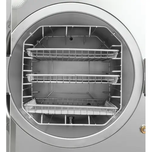 Triplo vuoto frazionato con asciugatura sotto vuoto per sterilizzazione profonda anche di strumenti imbustati.