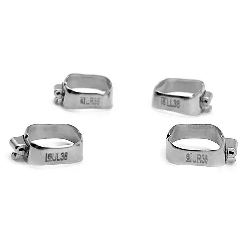 Questo set include quattro anelli ortodontici in acciaio inossidabile, specificamente progettati per i primi molari permanenti (“molar 1”) e dotati di tubi MBT (McLaughlin, Bennett, Trevisi) non convertibili. I tubi MBT sono pre-saldati sugli anelli per una stabilità ottimale e garantiscono una posizione sicura e controllata dell’arco durante il trattamento ortodontico. Ogni anello è contornato in modo anatomico per una facile adattabilità e per ridurre i tempi di applicazione, rendendo questo set ideale per trattamenti ortodontici di alta precisione. Il design include bordi arrotondati per il massimo comfort del paziente, evitando irritazioni alle gengive.