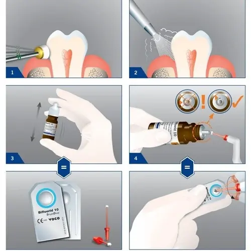 - Applicazione: Utilizzare la monodose per applicare Bifluorid 10 direttamente sulla zona sensibile, distribuendolo uniformemente con l’ausilio di un pennellino o di un microbrush.