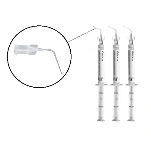 Calcicur è formulato per offrire numerosi benefici clinici. La presenza di idrossido di calcio nella sua composizione garantisce un ambiente alcalino che inibisce la proliferazione batterica e stimola la formazione di dentina di riparazione. Il formato in siringa da 2 ml consente un’applicazione precisa e controllata, facilitando il posizionamento del materiale nei canali radicolari o nelle cavità preparate. Calcicur è anche radiopaco, il che permette una facile visualizzazione radiografica, garantendo un controllo ottimale durante il trattamento.