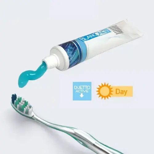 - Duetto Active: Utilizzare al mattino per un’azione sbiancante intensiva. Non utilizzare per più di due settimane consecutive.