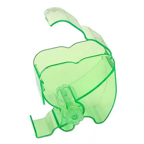 - Il dispenser presenta una forma di molare realizzata in materiale plastico trasparente. Questo design non solo aggiunge un tocco estetico al contesto dello studio, ma facilita anche la riconoscibilità del dispenser, rendendolo facilmente identificabile in mezzo ad altri strumenti.