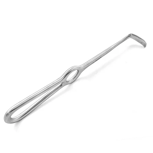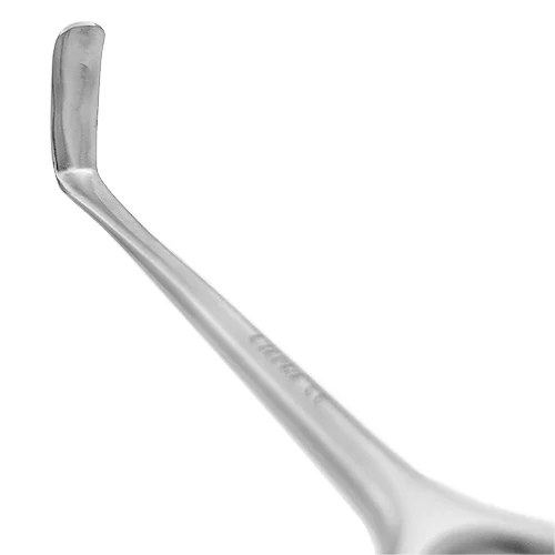 Design Langenbeck: Un’unica estremità curvata a 90° (forma a L) con bordi arrotondati per prevenire traumatismi ai tessuti.