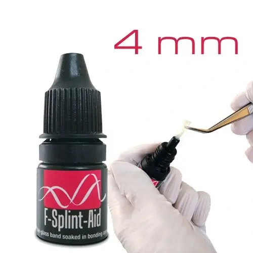 F-Splint Aid è un nastro in fibra di vetro di alta qualità, con una larghezza di 4 mm e una lunghezza di 120 mm, impregnato con Fiber-Bond. Questo nastro è specificamente progettato per realizzare splintaggi dentali in modo efficiente e preciso. Il nastro viene fornito in un pratico flacone richiudibile, che permette di erogare il nastro in modo parsimonioso, evitando sprechi sia del materiale stesso che dell’agente adesivo.