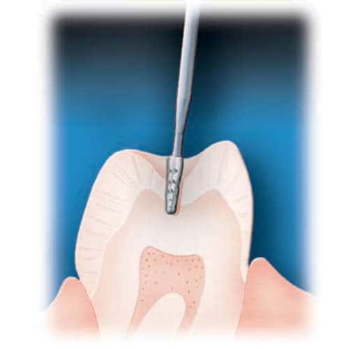 - L’estremità inattiva è diritta, garantendo una posizione sicura nella testa della turbina. La testa attiva è dotata di una punta tonda e del taglio incrociato, offrendo precisione di taglio superiore e una maggiore efficienza nella rimozione dei detriti.