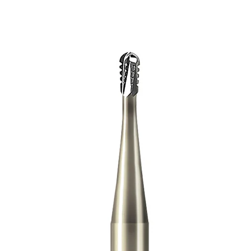 - La fresa presenta un’estremità attiva a forma di pera, appositamente progettata per il sezionamento preciso di corone dentali. Questa forma offre una maneggevolezza ottimale durante l’utilizzo, assicurando un controllo accurato durante la procedura.