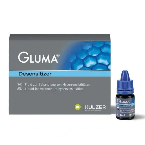 Gluma desensitizer 5ml è un desensibilizzante dentinale in flacone da 5 ml, formulato a base di glutaraldeide e metacrilato. Progettato per affrontare efficacemente i problemi di sensibilità dentale, Gluma desensitizer è particolarmente indicato per pazienti con sensibilità dentale, per il trattamento di cavità di Classe V e per il trattamento di monconi vitali. Grazie alla sua compatibilità con tutte le tecniche adesive, offre una soluzione versatile e sicura per migliorare il comfort del paziente.