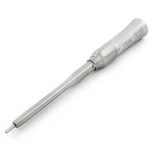 Il Manipolo Dritto Chirurgico, parte della gamma Ultria, è uno strumento odontoiatrico professionale progettato per procedure chirurgiche ed estrazioni dentali complesse. Grazie al design dritto e al collo lungo, il manipolo offre un accesso agevole anche in zone strette o affollate, facilitando interventi precisi ed efficienti. Il raffreddamento esterno, realizzato tramite un tubicino collegato alla punta, assicura il mantenimento della temperatura ottimale durante il lavoro, proteggendo i tessuti e aumentando il comfort del paziente.