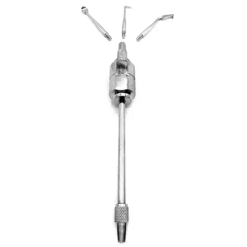 Il martelletto levacorone manuale è uno strumento indispensabile per l’odontoiatra alla ricerca di precisione e versatilità nella rimozione di corone dentali. Costruito con cura in acciaio inossidabile di alta qualità, questo martelletto offre affidabilità nel tempo e facilità d’uso. Il set inclusivo di tre punte specializzate garantisce una soluzione completa per una vasta gamma di esigenze cliniche.