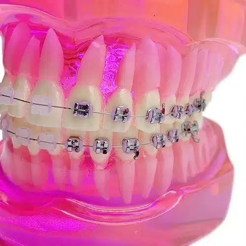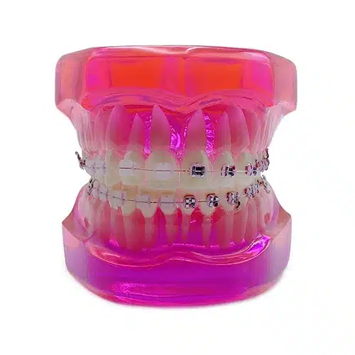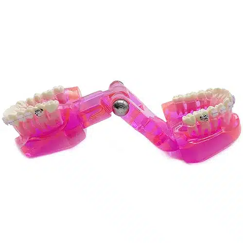 Il nostro modello didattico di apparecchio ortodontico in metallo-ceramica rappresenta un’importante risorsa per la comunicazione efficace e la comprensione dettagliata nel contesto ortodontico. Questo modello, realizzato in acrilico rosa trasparente a scopo didattico o dimostrativo, offre una rappresentazione chiara e dettagliata di un apparecchio ortodontico fisso.