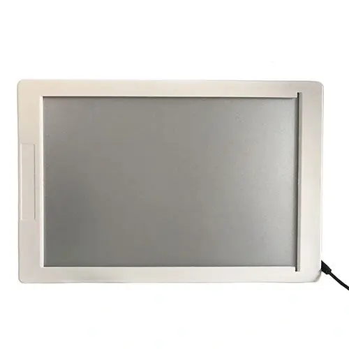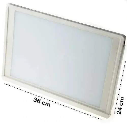 • Dimensioni: La dimensione totale del negatoscopio, inclusa la cornice, è di 36 x 24 cm, con una superficie di illuminazione di 30 x 20 cm, sufficientemente ampia per posizionare radiografie panoramiche senza problemi.