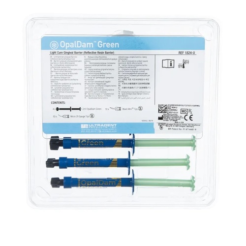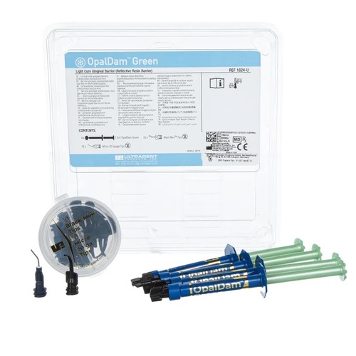 Opaldam green siringa ricambio 1.2ml è una barriera fotopolimerizzabile innovativa, progettata specificamente per proteggere i tessuti dentali e molli durante le procedure odontoiatriche, come lo sbiancamento dei denti. Questo prodotto, disponibile in confezione da 4 siringhe da 1,2 ml, è formulato con metacrilato e si distingue per la sua capacità di fornire una protezione sicura e precisa. Grazie alla sua composizione fotopolimerizzante e fotoriflettente, Opaldam green offre una difesa efficace contro il calore emesso dalla luce durante i trattamenti di sbiancamento.
