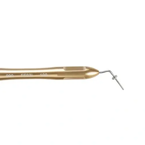 Il plugger manuale doppio 90/100 con manico color oro è uno strumento indispensabile per i professionisti in endodonzia che desiderano un posizionamento perfetto della guttaperca nei canali radicolari. Grazie alla qualità superiore dei materiali e al design pratico ed elegante, questo plugger garantisce risultati precisi e affidabili in ogni procedura, assicurando il massimo comfort per l’operatore e un trattamento ottimale per il paziente.