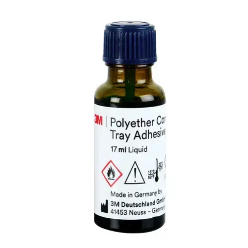 Polyether contact tray adhesive 17ml 3M è un adesivo di colore blu, fornito in un flacone da 17 ml, sviluppato da 3M Espe. Questo adesivo è specificamente formulato per garantire una forte adesione tra i materiali da impronta in polietere (come Impregum e Permadyne) e i portaimpronte standard o personalizzati, realizzati in metallo, resina o plastica.