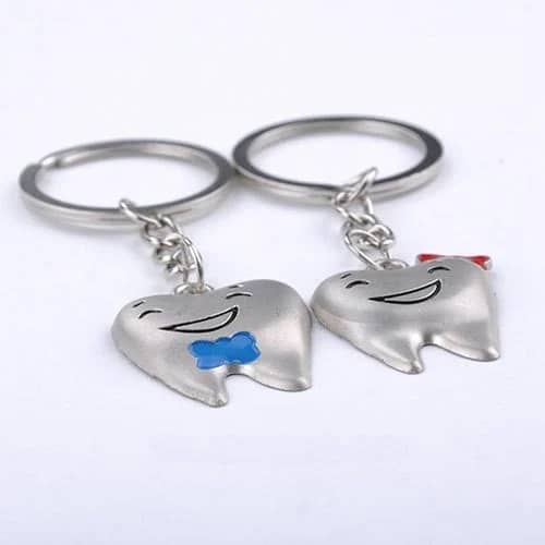 - Il set comprende due portachiavi, ciascuno modellato con cura per rappresentare in modo distintivo un molare femmina e uno maschio. Questa scelta non solo aggiunge un elemento divertente al tuo portachiavi, ma crea anche un legame complementare che li rende perfetti per coppie o amici con un interesse comune per l’odontoiatria.