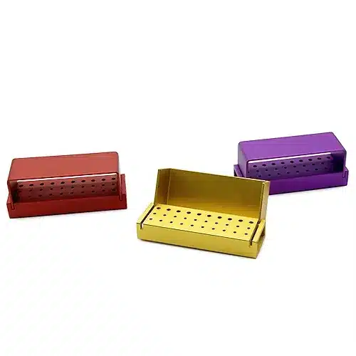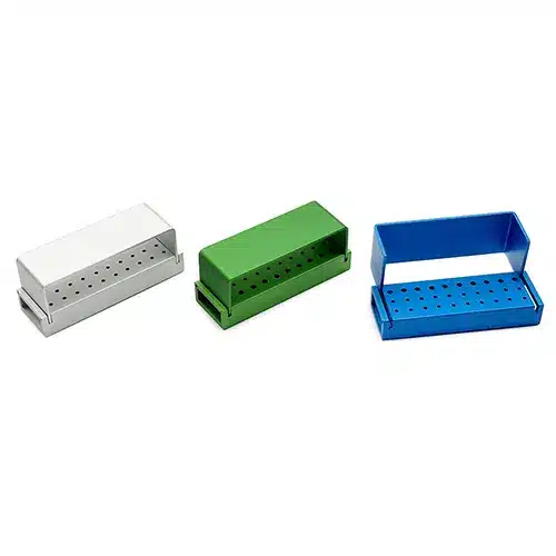 - Il box per frese dentali è progettato per resistere al processo di autoclavaggio, garantendo una sterilizzazione completa. Questa caratteristica è fondamentale per garantire un ambiente clinico igienico e sicuro.