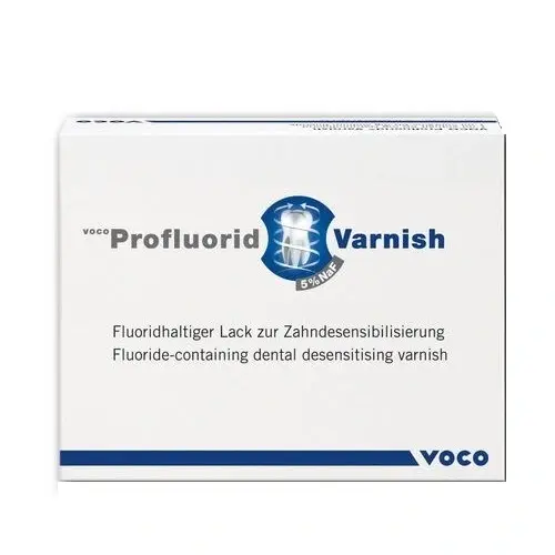 Profluorid Varnish è una vernice dentale desensibilizzante contenente fluoro (5% NaF), appositamente formulata per il trattamento di denti ipersensibili. Questa vernice è ideale per otturare i tubuli dentinali, trattare le superfici radicolari sensibili e proteggere le aree cervicali dopo la rimozione del tartaro e la pulizia professionale. Per rendere il trattamento più piacevole per i pazienti, Profluorid Varnish è disponibile in diverse versioni di gusto, tra cui menta, ciliegia, caramello e melone.