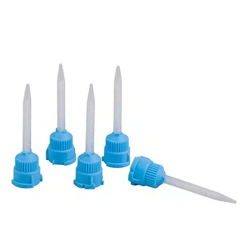 - I puntali miscelatori sono progettati per una facile manipolazione, consentendo ai professionisti di utilizzarli con comodità e sicurezza durante le procedure odontoiatriche.