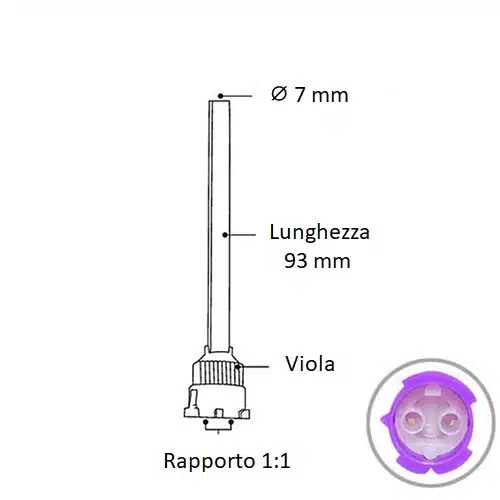 - Con una lunghezza di 93 mm, il puntale fornisce una maneggevolezza eccezionale durante l’operazione. Questa lunghezza consente di raggiungere facilmente anche le aree più profonde e difficili da accesso nel cavo orale.