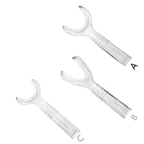 - Il retrattore è costruito con plastica trasparente e rigida, garantendo una chiara visibilità durante l’applicazione e una retrazione efficace delle guance. Questa caratteristica è cruciale per ottenere risultati precisi durante le procedure dentali.