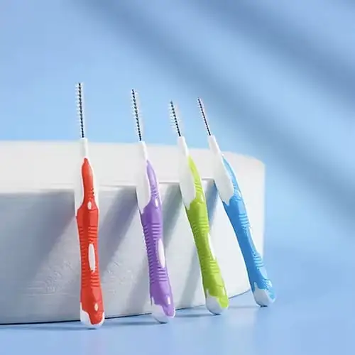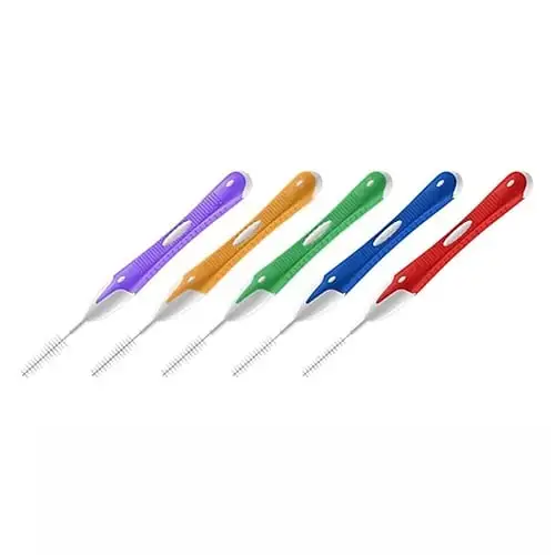 Il set di scovolini interdentali contiene 5 pezzi confezionati in una bustina richiudibile con zip, ideale per conservarli in modo ordinato e igienico. Ogni scovolino è dotato di un cappuccio protettivo, utile per mantenerlo pulito prima dell’utilizzo.