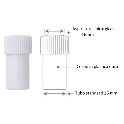 • L’adattatore da 16 mm è specificamente progettato per l’aspirazione delle cannule chirurgiche, fornendo una soluzione versatile per procedure più complesse.