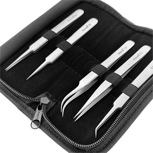 Il set di pinzette per microchirurgia a marchio Ultria include 5 strumenti specializzati, concepiti per coprire un’ampia gamma di necessità negli interventi odontoiatrici di precisione. Ogni pinzetta è ottimizzata per la manipolazione accurata di tessuti, fili di sutura o materiali estremamente delicati, offrendo un controllo eccellente e un’ergonomia superiore.