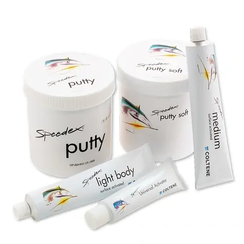 Speedex putty 910ml è un silicone per condensazione ad alta viscosità, fornito in barattolo, progettato specificamente per l’utilizzo con la tecnica Putty/Wash a doppia miscelazione. Questo materiale offre un indurimento immediato grazie alle sue proprietà termosensibili, consentendo una lavorazione rapida e precisa.