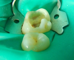 Dopo aver isolato il campo protesico, si rimuove la dentina alterata (carie dentale) e si prepara il dente (per intarsio, faccetta, corona, ecc.) con l’ausilio di apposite frese, identica alla procedura utilizzata per preparare il dente per un’impronta classica.