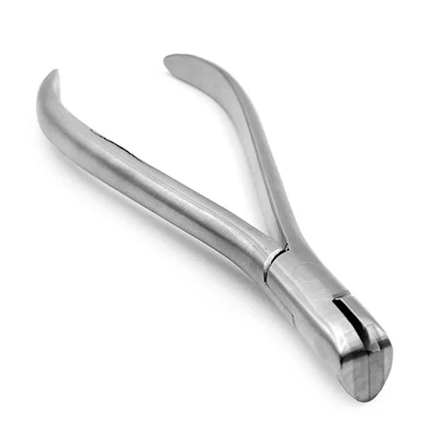- La lunghezza totale della pinza tronchese distale è di 14,5 centimetri, conferendo uno strumento compatto e maneggevole per le procedure ortodontiche. Questa dimensione ottimizzata garantisce facilità di manovra anche in spazi ristretti, consentendo precisione e controllo durante il taglio delle estremità distali.