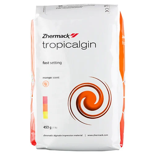 Tropicalgin busta 453g è un alginato cromatico “dust free” a presa rapida, fornito in una pratica busta da 453 g. Questo materiale per impronte dentali è progettato per fornire risultati precisi e affidabili, con una migliorata compatibilità con il gesso, inclusi quelli sintetici. Grazie alle sue proprietà tissotropiche ed elastiche, Tropicalgin può essere conservato in un sacchetto Long Life Bag per molte ore prima di essere colato, senza subire variazioni dimensionali.