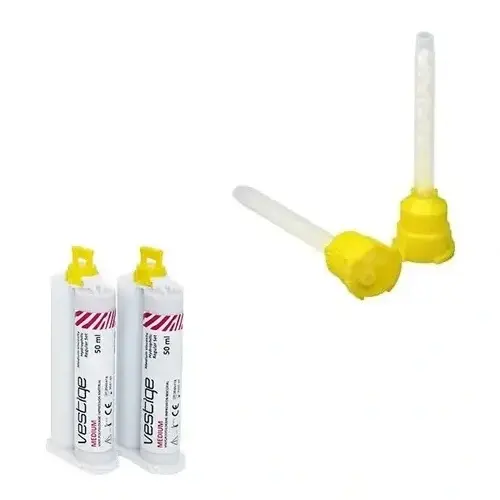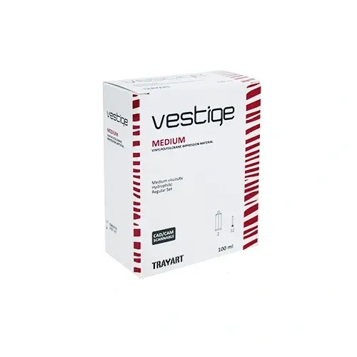 Vestige light medium 2x50ml è un materiale per impronte a media viscosità, caratterizzato da un’elevata idrocompatibilità e versatilità d’impiego. È ideale quando è richiesta una consistenza non troppo fluida, mantenendo scorrevolezza e precisione nella riproduzione dei dettagli.